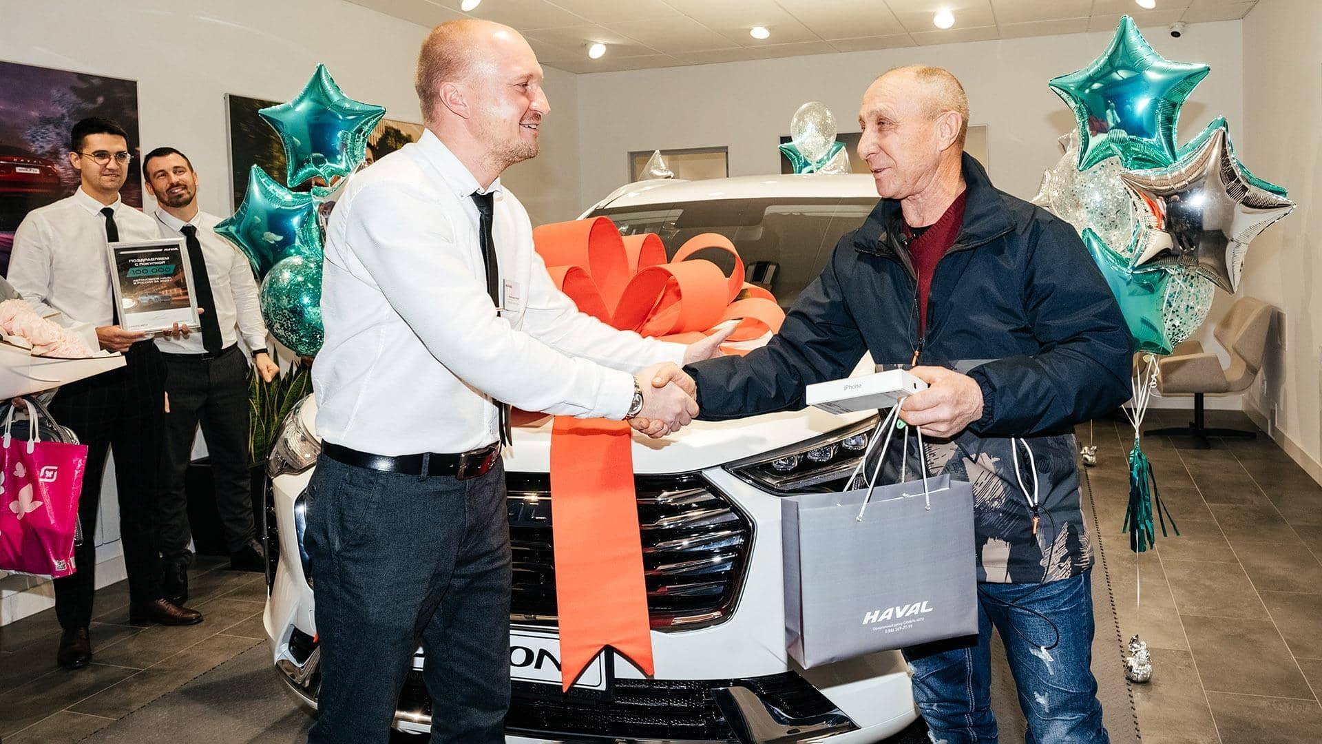 Обладателем юбилейного автомобиля стал покупатель из Самары Сергей Крапивцев, который сделал выбор в пользу HAVAL Jolion цвета «Белоснежный нефелин» в комплектации ELITE: «Слежу за HAVAL с момента его появления в России и очень внимательно изучал все особенности. Все, что я хотел видеть в автомобиле, я нашёл в этой модели. Спасибо большое моему менеджеру и всему коллективу Самара-Авто за отличную машину и большое внимание», – поделился он впечатлениями. На торжественной церемонии управляющий директор дилерского центра «Самара-Авто» Сергей Пупынин лично поприветствовал покупателя, выразил слова признательности за высокую оценку HAVAL и передал памятный приз в виде смартфона.